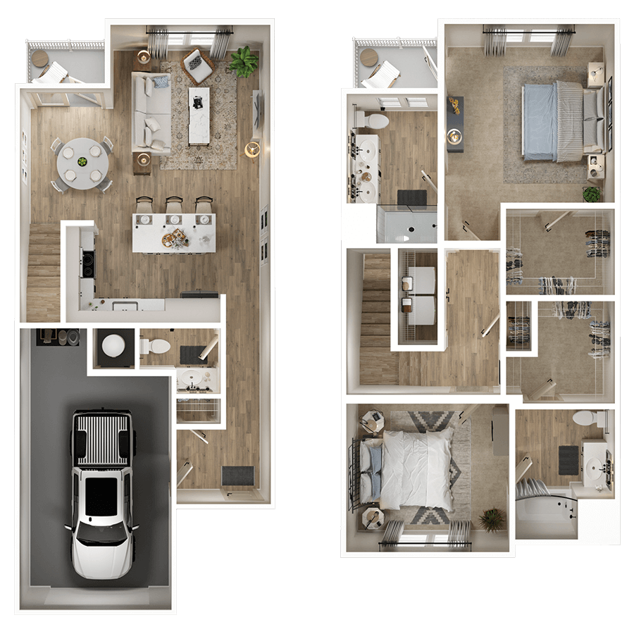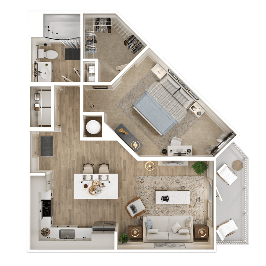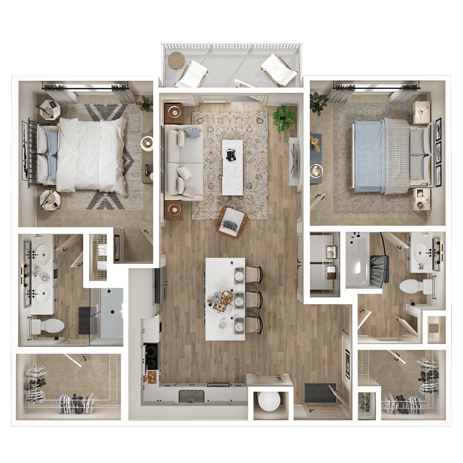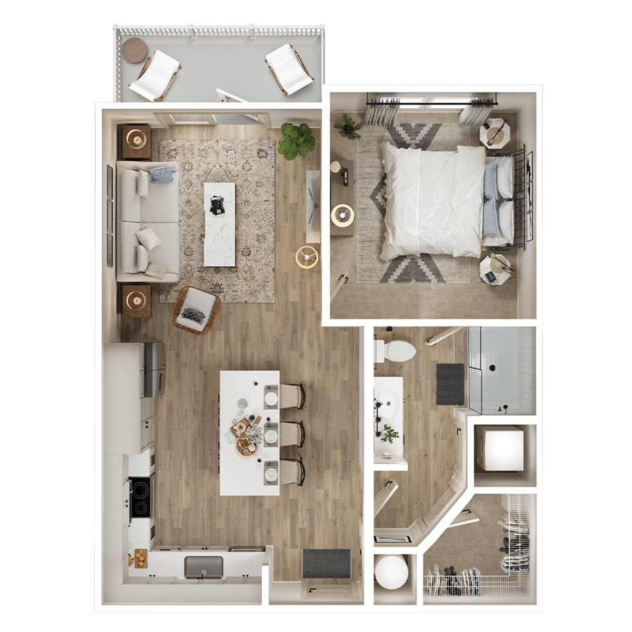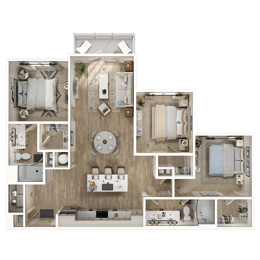 Our thoughtfully-designed one, two & three bedroom residences feature chef-style kitchens with gourmet prep islands, matte black fixtures, soft-close cabinetry, stainless-steel appliances, quartz countertops and porcelain tile backsplashes. Pamper yourself in a bathroom worthy of a spa, featuring a walk-in cascade shower, soaking tub, and dual vanities.